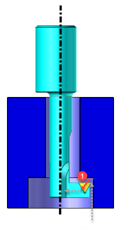 When machining by pulling with a backspot face mill or a reverse chamfer mill with rigid insert, this is the distance (1) that allows the tool to disengage at 45° from the upper face after stopping the rotation of the tool.