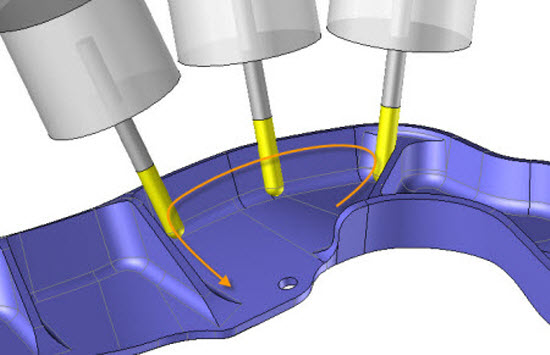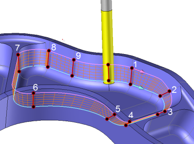 C’est une méthode manuelle, elle est utilisée dans le cas ou les méthodes sur faces n’ont pas donné de résultat correct. L’utilisateur doit construire deux courbes sur lesquelles l’outil sera appuyé pour définir la trajectoire 5 axes.
