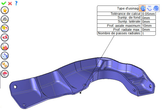 Dans le cas de face d’appui il est impératif de définir le rayon du congé. En général il suffit de définir un rayon supérieur ou égal au rayon de raccord entre les surfaces à usiner et les faces d’appuies.