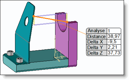 Example of a distance analysis between two shapes. The orange line represents the minimum distance between the shapes. |