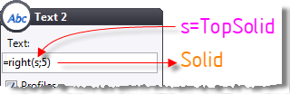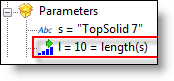 C=mid("TopSolid";3) is equal to "pSolid" (C is a text parameter). |