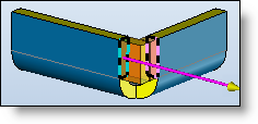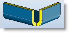 This command is particularly useful when we wish to do a covering with a sheet created from the extrusion of a sketch. In this case, the lateral faces are only made up of a single face which does not enable the desired result to be achieved.