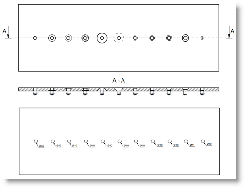 If the hole contains some cylindrical faces, TopSolid will take as hole diameter on the unfolding, the diameter of the smallest cylindrical face (and also if the hole contains conical faces with smallest diameters). If the hole contains only conical faces,TopSolid will keep as diameter, the smallest diameter of cones. TopSolid only considers through all drillings crossing the sheet metal on the side where the origin face is selected for the unfolding.
