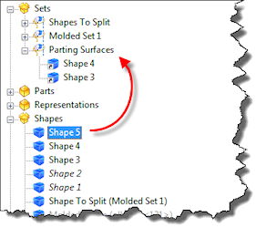 Gradually in the design process, TopSolid'Split creates in the Entities tree the sets that match to each element of your conception.