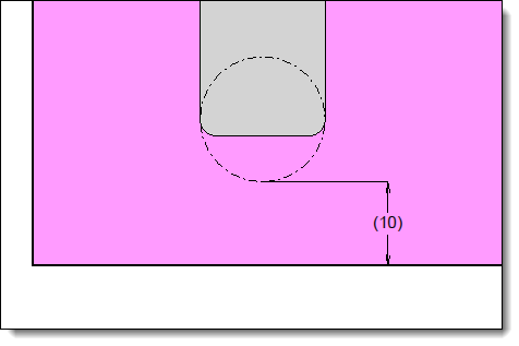 With 2mm vertical radius, 10mm entry limitation aligned to the tool edge. |
