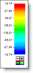 The color palette allows to modify the color scale in order to adapt it to the part geometry and so be able to visualize more easily small variations of the norm of displacements. The "-" or "+" under the color range allow to increase or reduce the range on the graduations. By clicking on the small color square under the color palette, the color range can be either continuous or discrete.