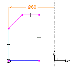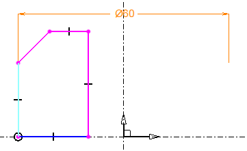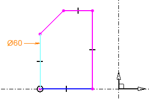 As the dimensions and constraints are created, TopSolid changes the color of the sketch elements in order to indicate whether they are fully constrained. An under constrained element is displayed in magenta, a completely constrained element is displayed in blue.