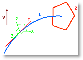 In order to define the movement of the sweeping exactly, the simplest way consists of considering the section as being stationary on a frame of which the origin moves along the path. This frame will be called "sweep frame".