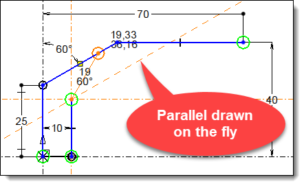 The Length mode allows you to enter a value that will be assigned to the length of the segment. The corresponding dimension will be automatically added.
