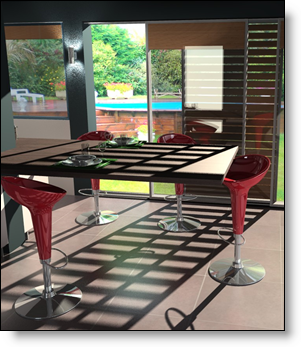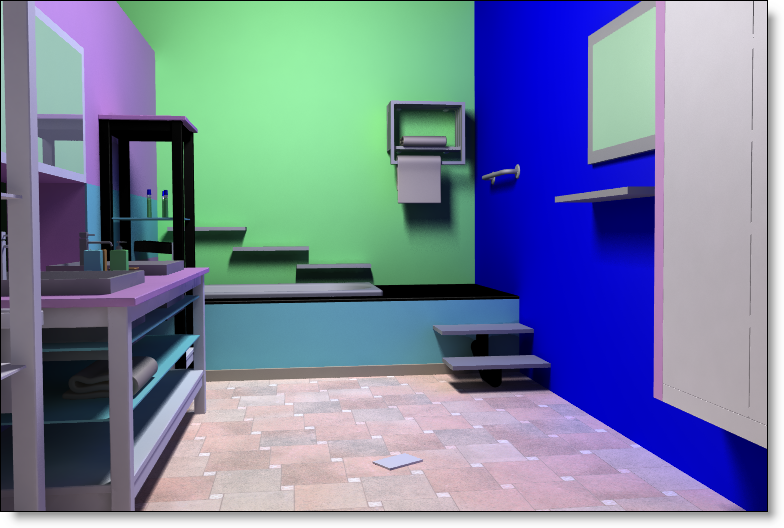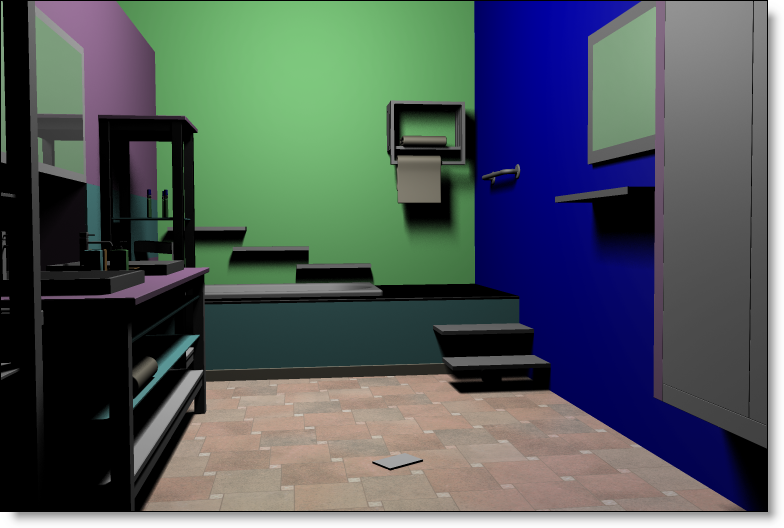This option allows you to accurately simulate the ambient light reflected by the scene itself, and no longer only the direct light from luminous sources. In a classic image calculation, an area that is not directly lit by light is black. In reality, this area receives light re emitted by the walls and scene objects. Global illumination takes this effect into account and avoids obtaining unlit areas. This option is particularly useful for implementation and architecture images.