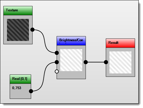 To define this filter, it must be connected to the input with another node of type Inputs accessible from the same menu (to add color, real or textures).