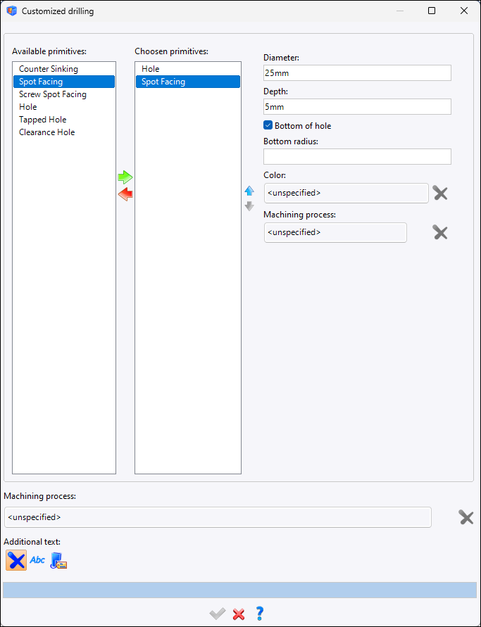 The second column contains the operations which the drilling template will contain.