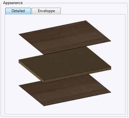 The Appearance tab displays the result of our multi-layer material, if no envelope material has been selected, the detailed appearance will be used.
