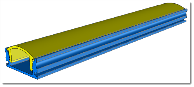 In an assembly document, it is possible to included several extruded bars and to provide the Extruded bar function document in order to define an extruded bar of extruded bars. This allows for example to create an extruded bar with its seal. This extruded bar behaves like any part extruded bar and supports cutting operations (miter trim, main trim, curved extruded bar, ...).