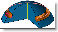 When the path is not planar but spatial, it is necessary to specify a direction that define the orientation of the tool along the path. The tool's orientation then remains fixed relative to the given direction. This orientation can be defined by a direction or faces (normal to the face along the path). In the example below, the direction is indicated by the yellow arrow.