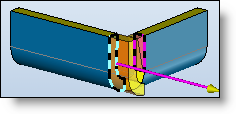 This command is particularly useful when we wish to do a covering with a sheet created from the extrusion of a sketch. In this case, the lateral faces are only made up of a single face which does not enable the desired result to be achieved.