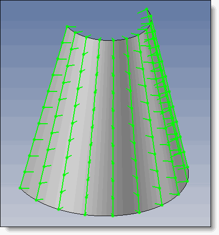 Strictly speaking, a surface is unfoldable if, along one of each section curve, all normals to the surface are parallels. In the opposite case, the surface is said "quasi developpable". TopSolid allows to unfold this kind of surfaces, but they are modified by adding an additional deformation, so they are not strictly "rollable".