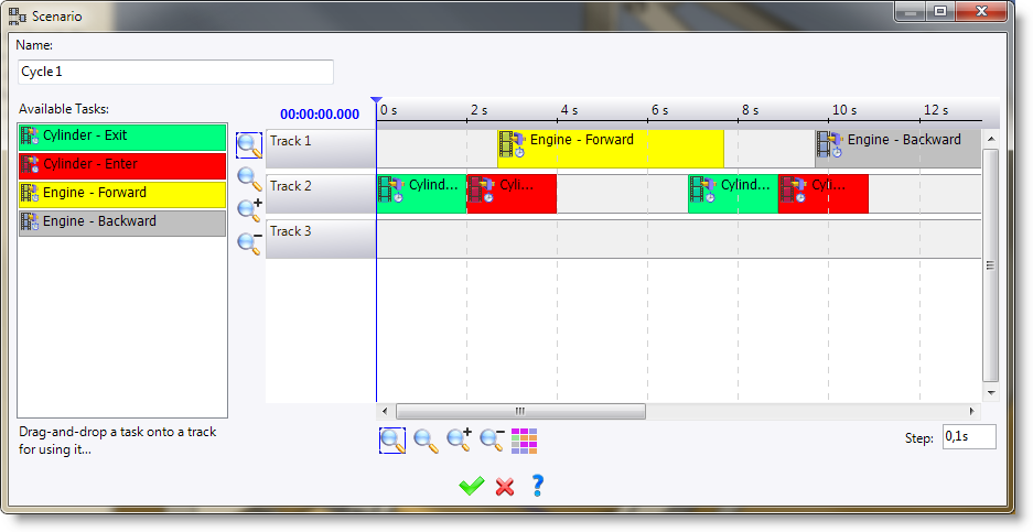 To add tasks, drop the relative tasks in the desired scenario.