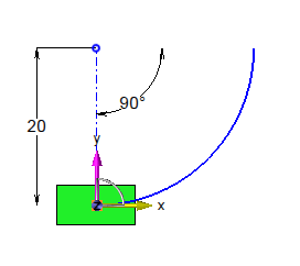 Allows to create a circular displacement by adding a displacement and a rotation. Bellow is an example with the Translation Y=20mm and a Rotation Z=90°: