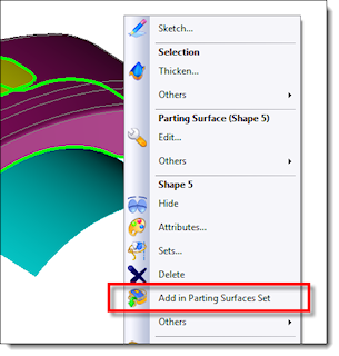 Sometimes, it is not possible to use TopSolid'Split functions to create your parting surfaces. In this case, you can of course create your own surfaces, with the TopSolid'Design tools. If you want to see them correctly considered by the software, you would have to assign them as Parting surfaces :