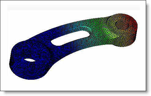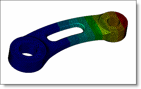 The color palette allows to modify the color scale in order to adapt it to the part geometry and so be able to visualize more easily small variations of the norm of displacements. The "-" or "+" under the color range allow to increase or reduce the range on the graduations. By clicking on the small color square under the color palette, the color range can be either continuous or discrete.