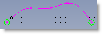 Mathematical continuity in tangency and curvature. This mode generates many internal constraints (the displacement of an entity of the curve (tangent or point) can generate a displacement of the other entities (other tangents and other points)). The passing points are constrained by two tangents with the same orientation but with different lengths. When you move a tangent, tangents of others interpolation points can also move if they are free of any constraint. When you move an interpolation point the other interpolation points can also move if they are free of any constraint.