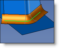 Disk: The join between disk faces results from making the intersection of faces a disk. This type of join must be defined as a guide profile for the disk. The disk's normal is defined by the tangent to a given profile. The profile must be able to define a normal at each point of the join. The green profile or edge defines normal for the section plans. The geometry of the join is directly influenced by this normal.