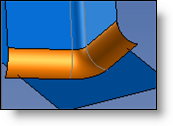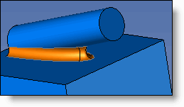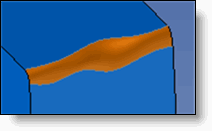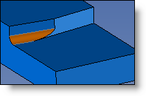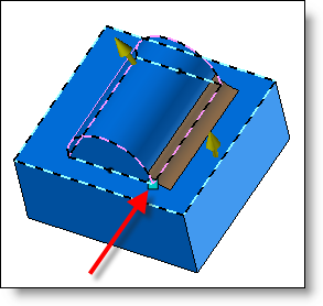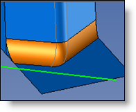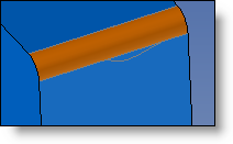 Edges - Radius: The join will have the radius entered, and it will be trimmed by the selected imprinted profile. The radius must be less than the greatest distance between the impression and the intersection edge for the various faces. |