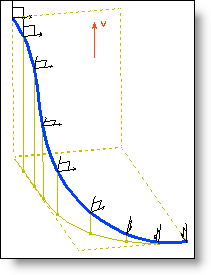 In order to define the movement of the sweeping exactly, the simplest way consists of considering the section as being stationary on a frame of which the origin moves along the path. This frame will be called "sweep frame".