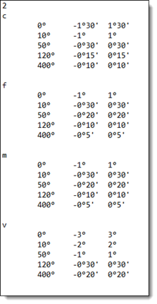 Tabulation, minimum bound value, tabulation, lower deviation, tabulation, upper deviation