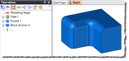 With the healing mode checked, when the pocket is deleted, the fillet operation is automatically healed with the available edges: