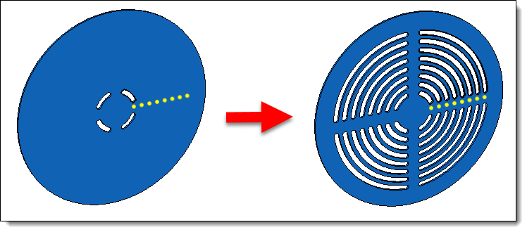 - An operation of repetition of entity (Construction > Pattern > Repetition... command), the origin corresponds to the entity to repeat and the targets to the entities created by the repetition.