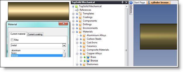 For the material: The TopSolid v6 standard material is linked with the corresponding material of the TopSolid mechanical library.