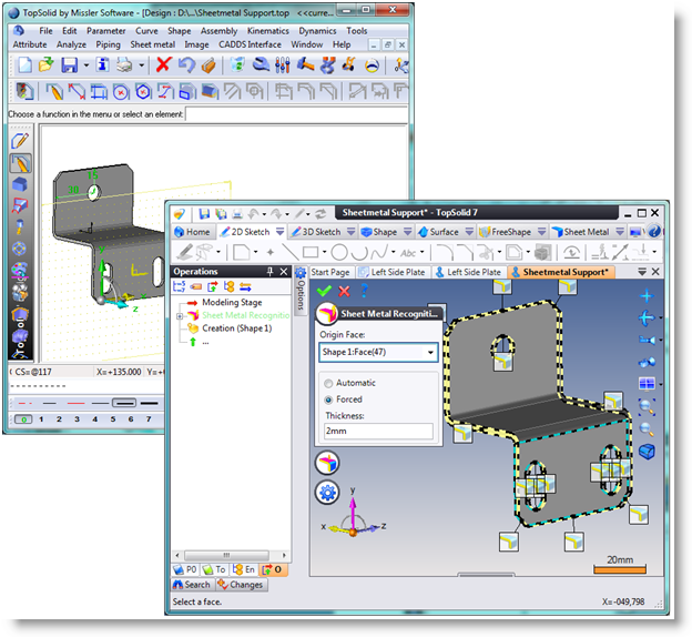 Importing a document with sheet metal information creates automatically a sheet metal recognition operation in the imported document.