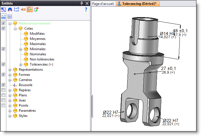 possible de modifier la valeur de toutes les cotes, tolérancées