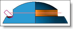 The sketch tool is actually the section of the semi-slot/tongue and runs along the path in the following way to generate the shape of the operation: