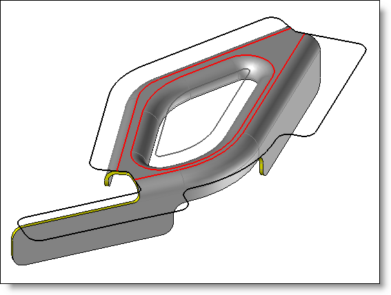The imprinted segments can be displayed on the unfolding. They can be on plane faces, on bend, on unfolded faces. They can be in contact with borders or cut-outs or cut a part "in two parts". It is recommended to imprint them on the both sides. If not, regarding the chosen plane face, the imprinted segments will be displayed or not. |