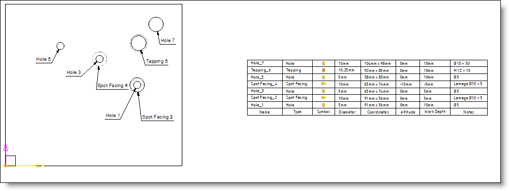 • Informations for sorting: Allows to sort informations. For example, by selecting the nominal diameter of threaded holes, it is possible to sort threaded holes by ascending or descending order regarding their nominal diameter.