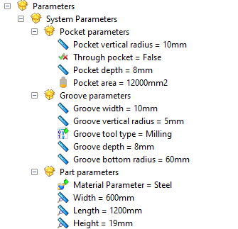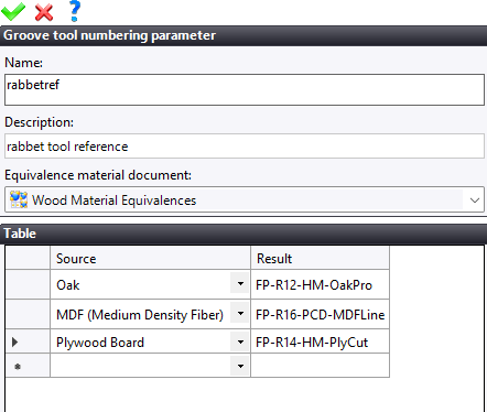 For rabbet, groove, and pocket operations, it is possible to assign a different tool number depending on the operation parameters.