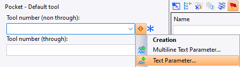 After validating the material parameter, the creation of the tool number parameter is initiated :