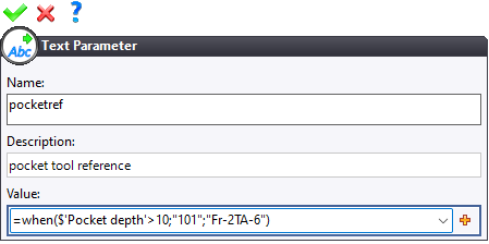 In this case, if the pocket depth is greater than 10 mm, the exported tool reference will be "101", otherwise it will be "FR-2TA-6".