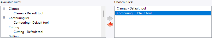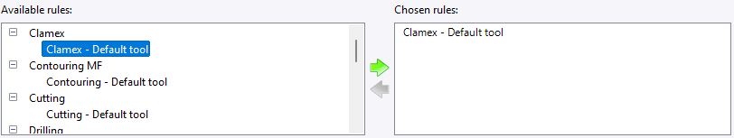 When a material-based tool rule is moved for the first time into the selected rules, the creation of a material parameter is automatically initiated.