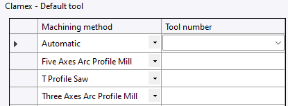 For Clamex connectors, it is possible to assign a tool number for each machining method :
