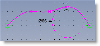A context menu on a spline allows you to activate the Add Passing Point to Minimum Radius command.