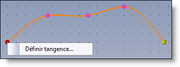 Handles (yellow spheres) at the ends of the curve allow tangencies to be defined through the popup menu when creating the curve. After activating the command, select the start or end tangent (line, axis, etc.). When the spline is validated, constraints between the tangent and referent element will automatically be created.