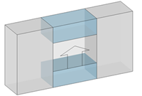 Outside picked shape: Allows to create the block envelope inside housing block ( (the computation of the block will be done by searching the faces parallel and perpendicular to the selected faces). Example: to insert shelf, block envelope will search housing inside a cabinet. |