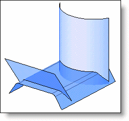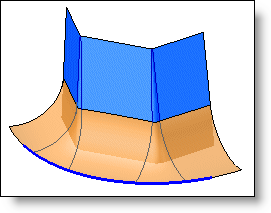 Disk: The join between disk faces results from making the intersection of faces a disk. This type of join must be defined as a guide profile for the disk. The disk's normal is defined by the tangent to a given profile. The profile must be able to define a normal at each point of the join. The green profile or edge defines normal for the section plans. The geometry of the join is directly influenced by this normal.