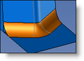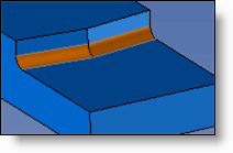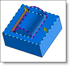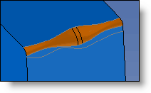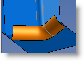 Edges - Radius: The join will have the radius entered, and it will be trimmed by the selected imprinted profile. The radius must be less than the greatest distance between the impression and the intersection edge for the various faces. |