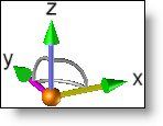 To rotate the view spherically, click the end of an axis (represented in green in the opposite image) with the left mouse button and move the cursor while holding down the left mouse button.
