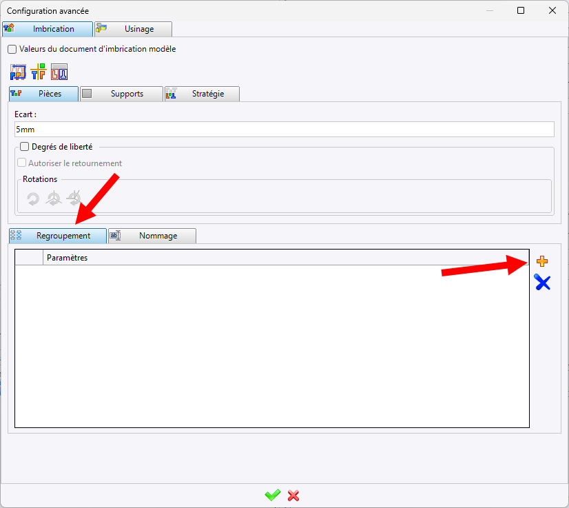 La configuration avancée du traitement d’imbrication propose une nouvelle fonctionnalité de regroupement, qui permet d’organiser automatiquement les imbrications selon différents paramètres.